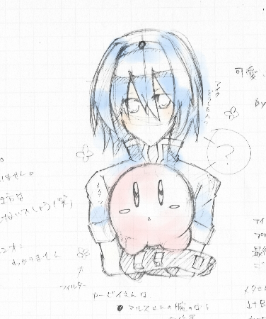 暇なのでアイクさんのバンダナ(で良いのかな;)で遊ぶカービィさん。